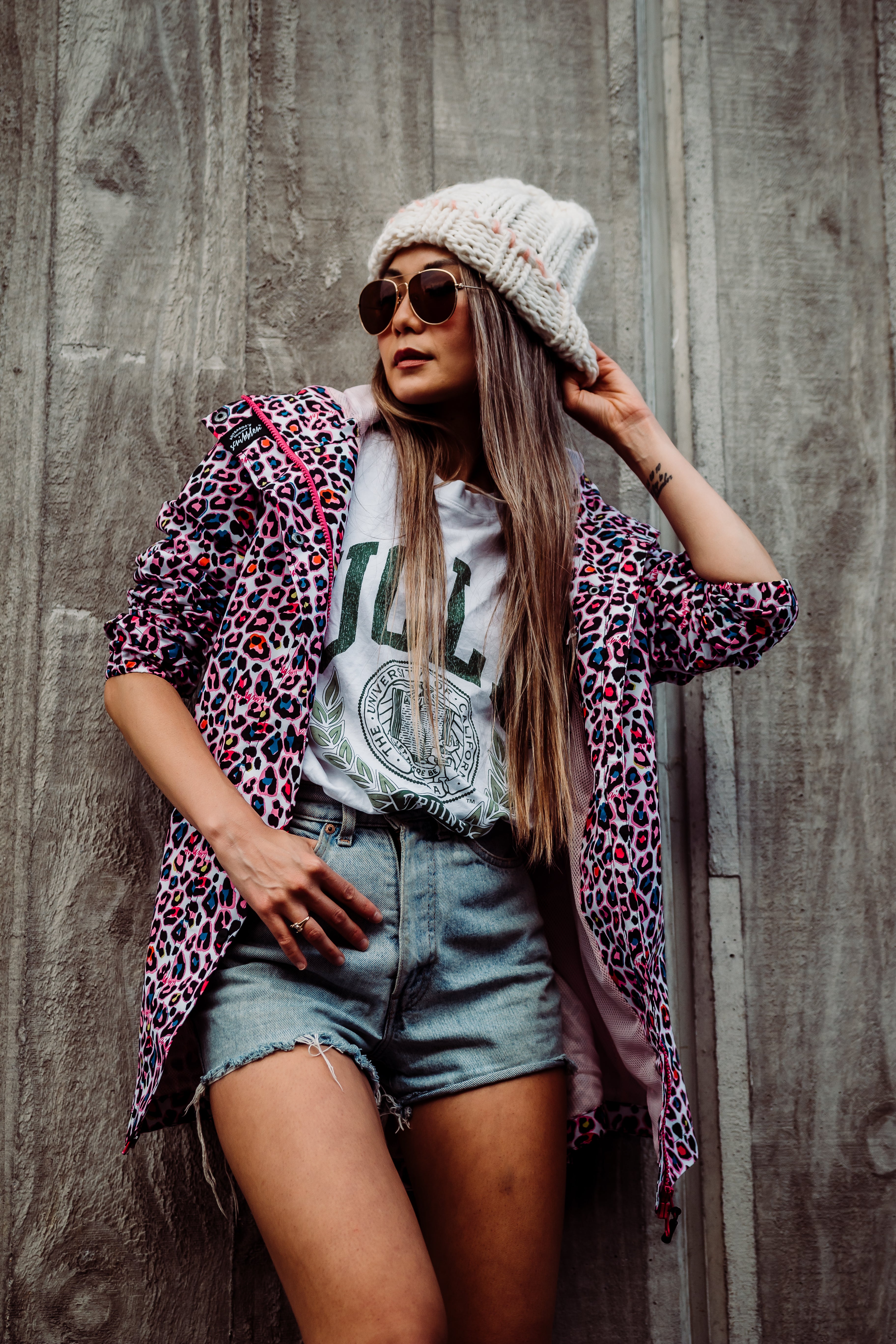 Neon Leopard waterproof mesh lined raincoat